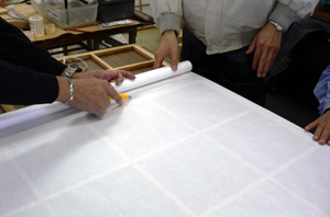 障子貼りって、子供の頃に手伝いました。その直前に、ズバッーー、バシバシっと穴をあけるのが楽しかったな〜! その頃のものは美濃判という28cm幅のものだった記憶があります。