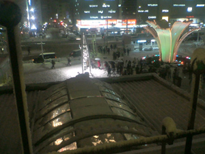 ルミナリエは震災で亡くなった方への鎮魂のためのイベントです。冬の華やかなイルミネーションの中にも、厳かな雰囲気があります。今年は、初めて市役所の上からも、ルミナリエをみました。行列のわりには、あまり待つこともなく展望階へ。