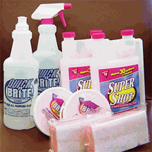 ガラス拭きとアルミサッシ桟の掃除には、我が家の必殺掃除洗剤クイックブライトが久々に登場です。