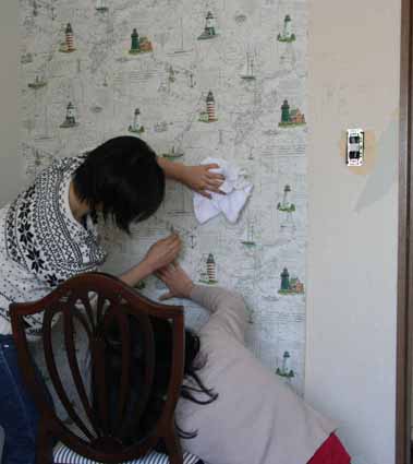 ivyとcelloは前回壁紙貼りは経験済みです。
