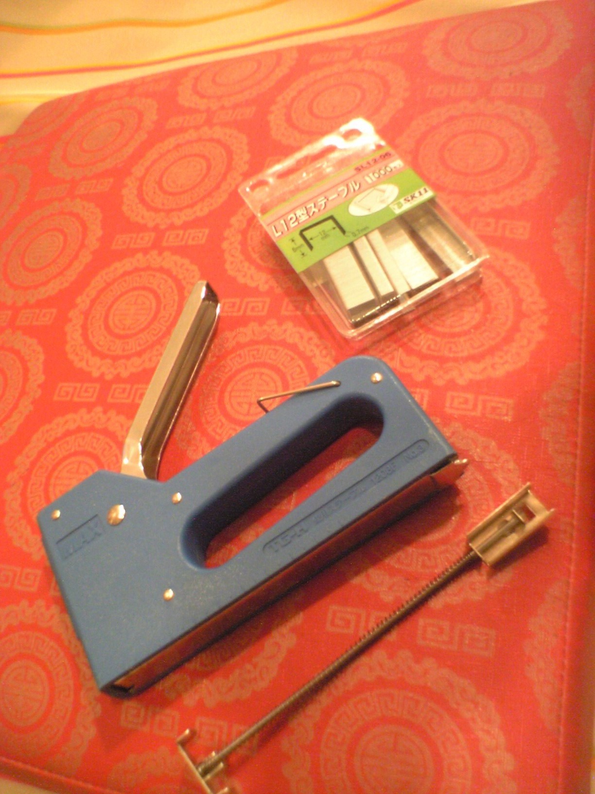 道具はこれ!巨大ホッチキス。タッカーです。