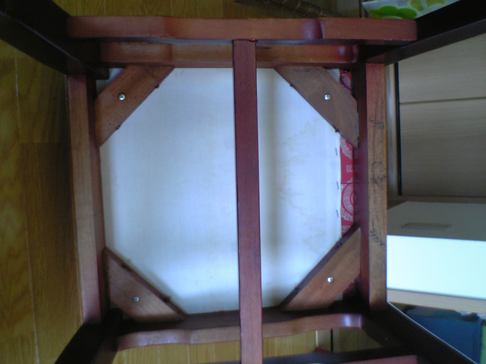 さて。色を塗り終わったら座面の張替えなのですが、まだ張り地が