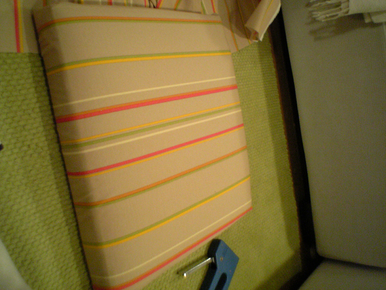 どうでもいい布をかぶせてますが・・・。黄緑の良い布地が見つからないのです〜
