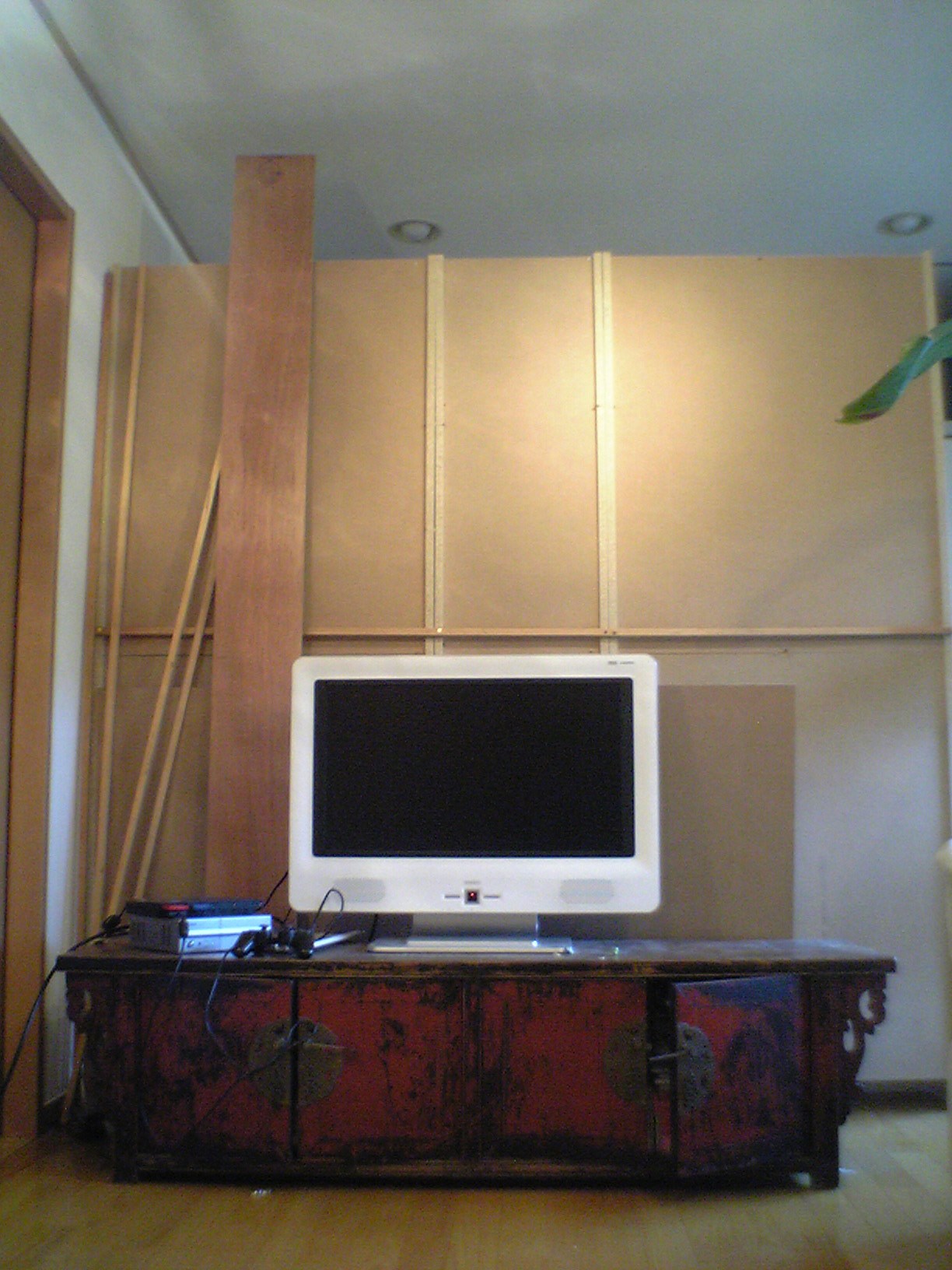 裏はTVボード。ここにペイントして、CDやDVDを置くための棚を付けます。