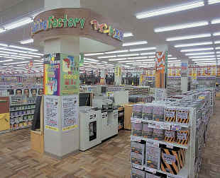 奥の方は人が小さく見えるほど、何十メートルも奥行きのある通路が7本、ここにほとんどの組立て家具の在庫があるようです。