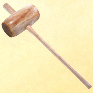 で、見つけたのが写真の道具。長さ1mくらいの巨大ハンマーというか「つち」、打つ面の直径は15cmくらい!