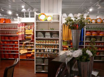 この写真の左側の食器なんてド・オレンジ。あまりに派手なので買うのを躊躇しそうになりますが、こんなお皿にトマトと生ハム、アボガドのサラダなんかが盛り付けられていると想像すると...と思わず買っちゃいそうになりませんか?